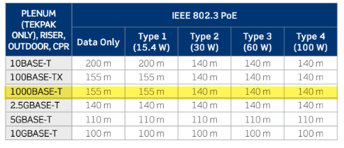 Available globally, the Cat 6A UTP structured cabling system features ATLAS-X1 jacks and SST cable. This solution is a fully ANSI/TIA compliant system, reaching 155m with a 1gb and Type 1 POE. See the full distance chart for the breakdown for SST performance.